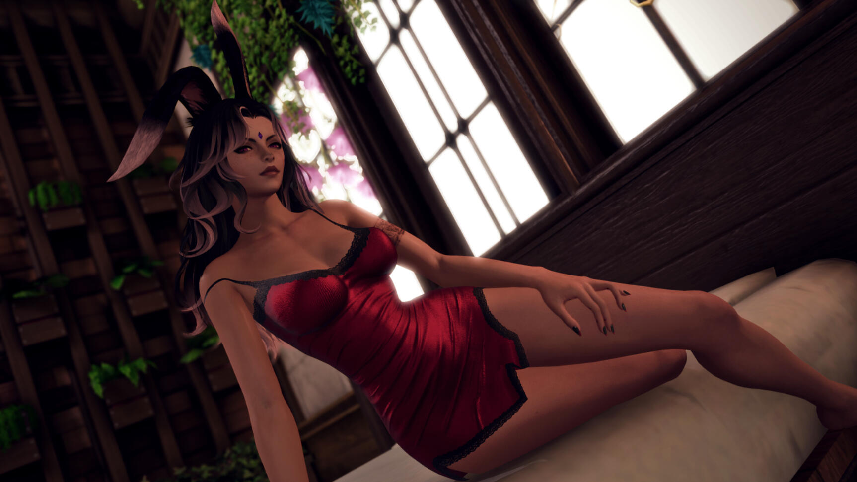 A native of the Golmore Jungle turned resident of Gridania, Hianta is a viera with a lust for life.She originally came to Ul'dah to pursue her passion for fashion and learn to foretell the destiny of those around her. Her talents in the world of fashion soon fell somewhat flat, however so she started working in the venue scene where she met her best friend Shaluna, who taught her to bartend.The two friends also found joy in traveling together and Hinata soon realized she yearned to be back in a more natural habitat. She has since settled down in the lush green surroundings of the Lavender Beds and taken to practicing her childhood hobby of playing the harp. She continues to enjoy playing music and all things creative as she works in different venues around Eorzea.Currently she can be found on Monday nights at The Speared Hare working as a bartender and manager at Perfect Break Casino & Nightclub or serving tables and slinging drinks at Chocobo Wild Wings.